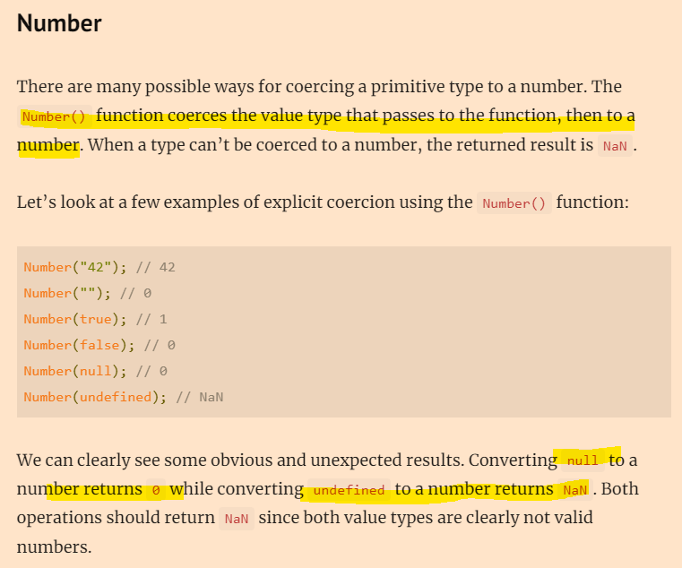 This is one of the reasons why developers tend to avoid implicit coercion in JavaScript. Most of the time we get unexpected results from the operation if we don’t know exactly how JavaScript coerces the value types.