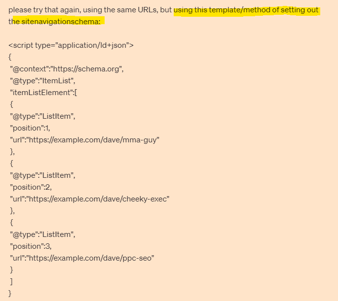 There are some old posts saying Navigation Schema is not approved by Google, but it now appears to be on the list of approved schema – screenshotted below “SiteNavigationElement”:
