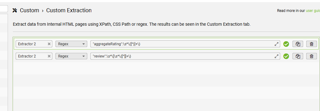 - and set up a second custom extraction to check for URLs/pages with any reviews –