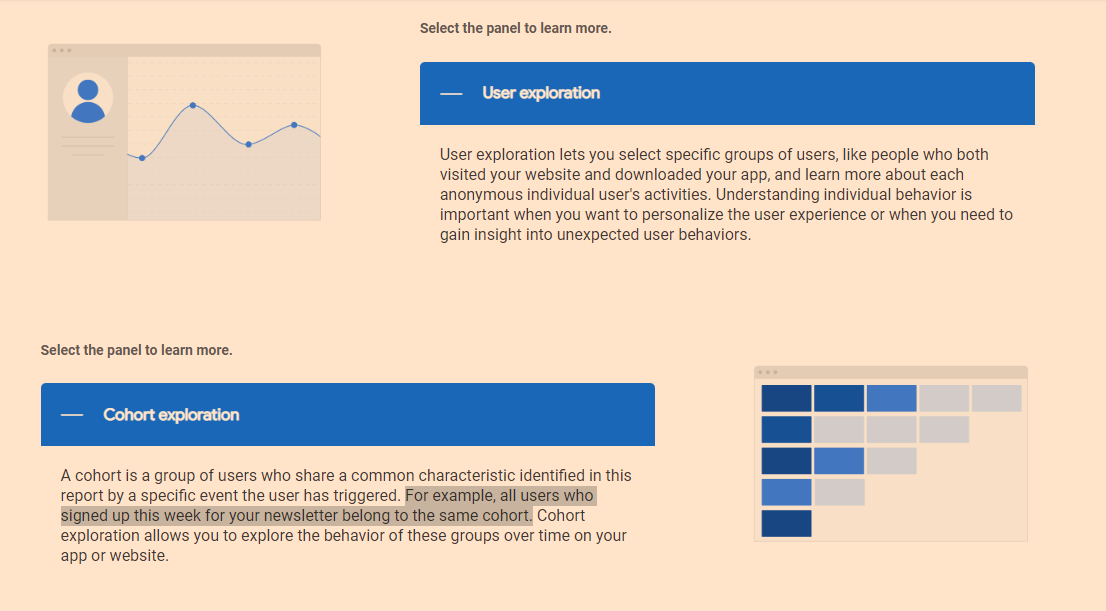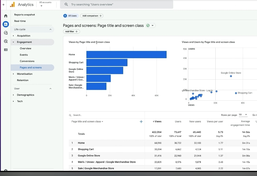 Pages and Screens – see what people are doing on which pages. “Screens” is a term for mobile apps.