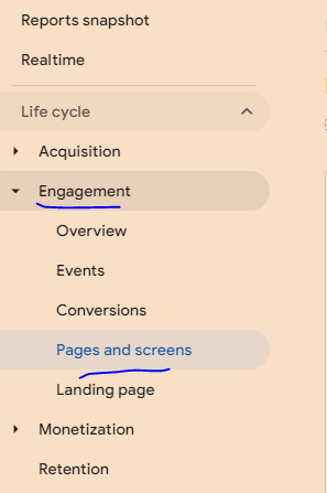 REPORTING > ENGAGEMENT > PAGES AND SCREENS