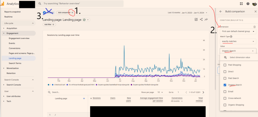 Useful Report 3 – Organic Landing Page Report in GA 4: