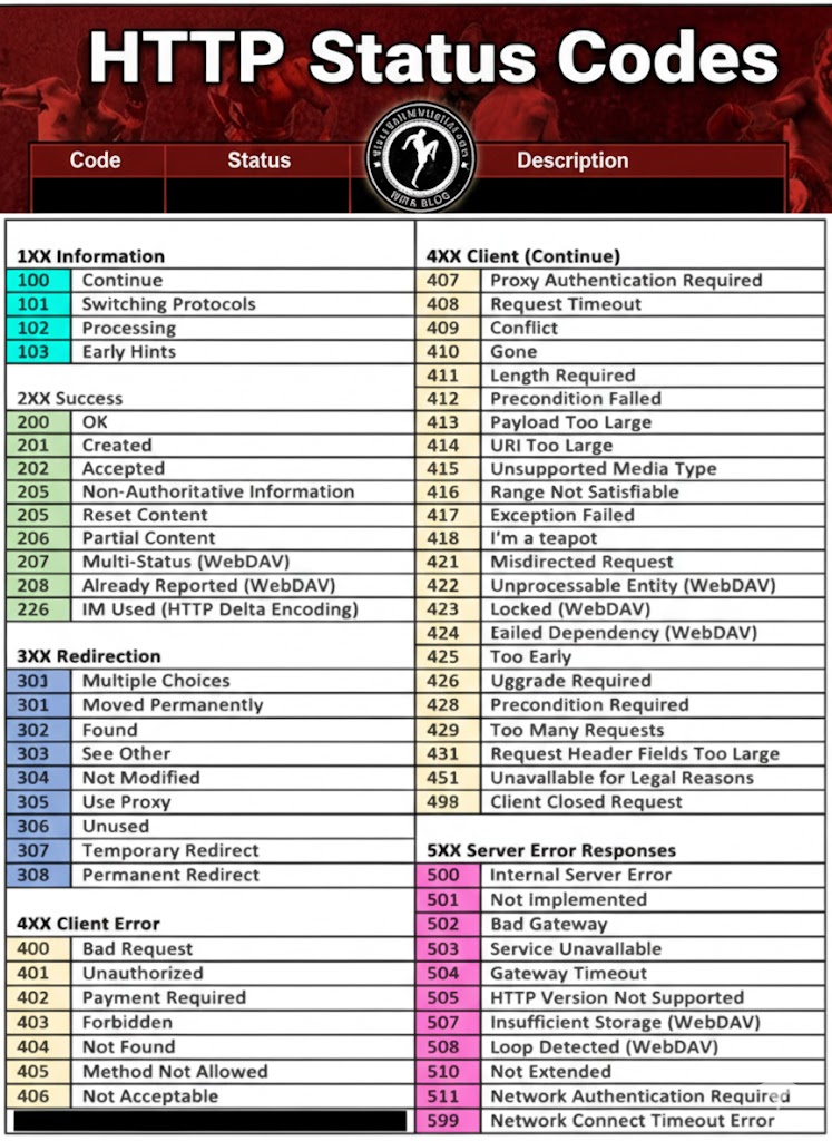 most common – 404 – Not found, 301 – redirect (permanently moved the webpage to this new one)