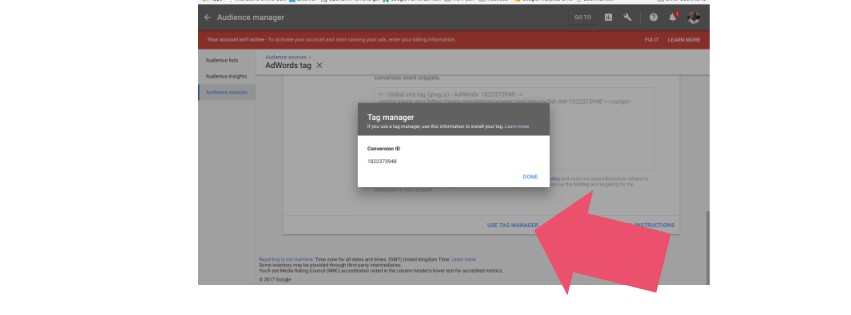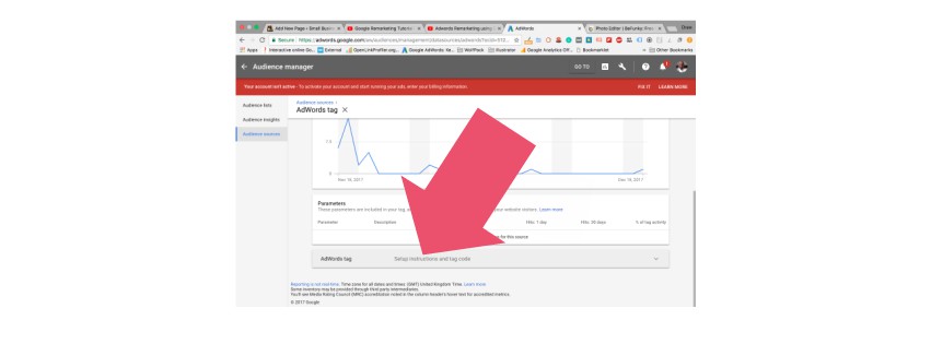 If you haven’t already you will have to add the remarketing tag/code to your website: